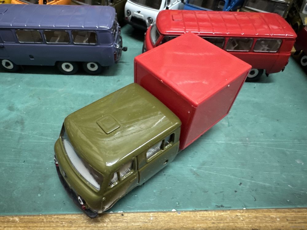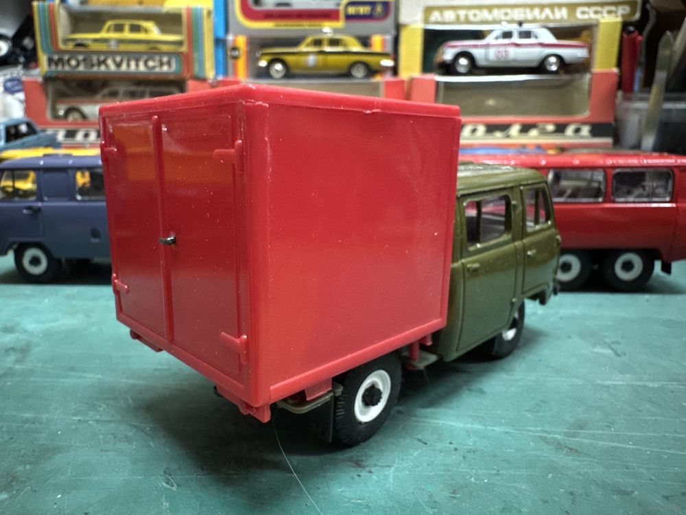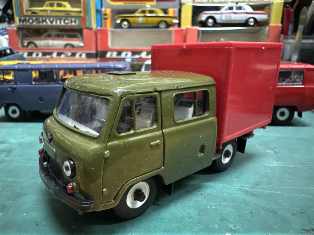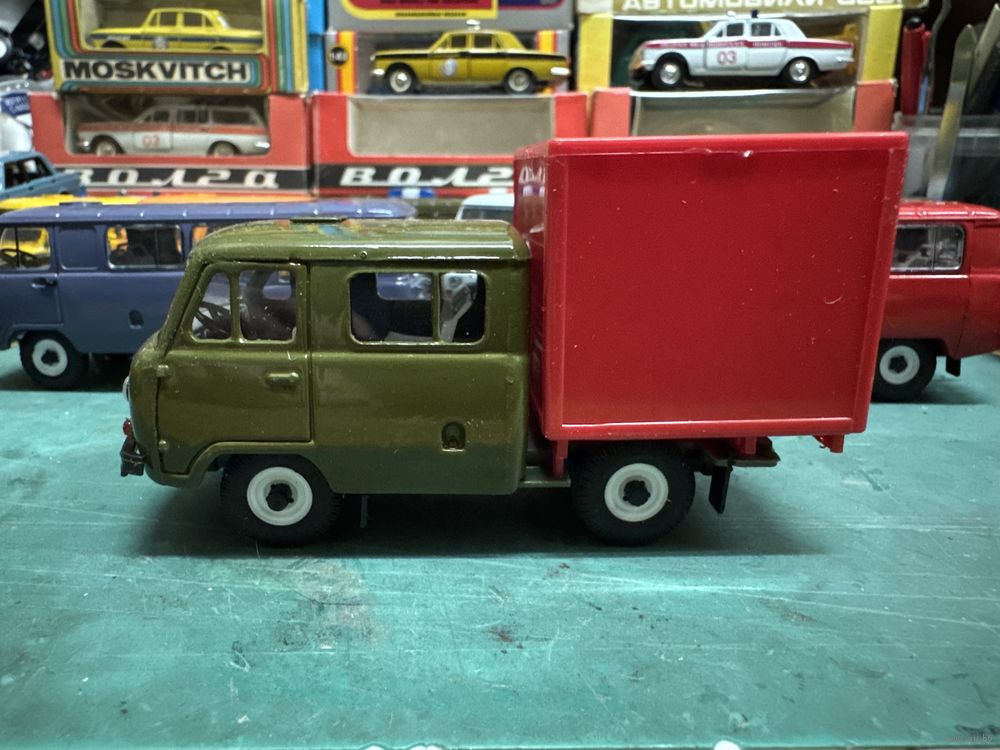 УАЗ-39094 Фермер, кабина - цвет хаки, металл, кузов будка, Тантал, Агат, Саратов. Дно с надписью УАЗ-3962 №01 ставилось универсально почти на всех поздних выпусках УАЗов.