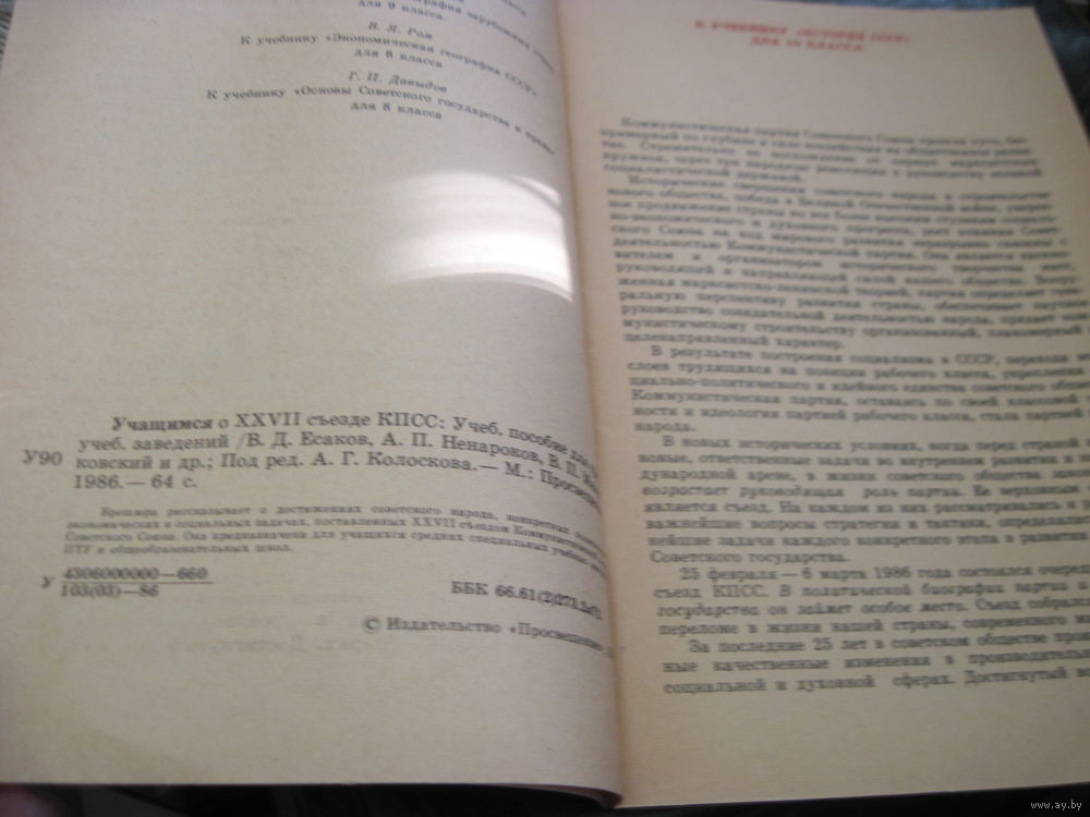 Учащимся о XXVII съезде КПСС. Учебное пособие. 1986 г. С рубля!