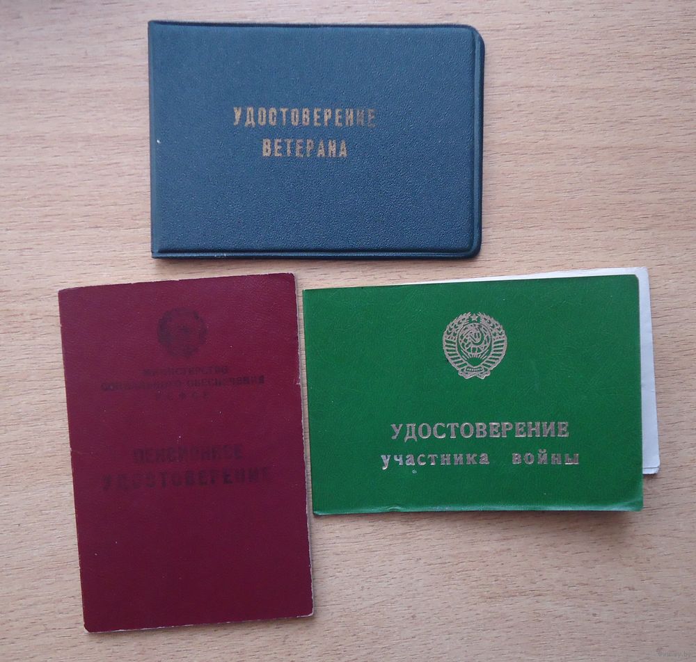 Удостоверение участника войны, удостоверение ветерана труда, пенсионное удостоверение. Все на одну женщину, Новороссийск.