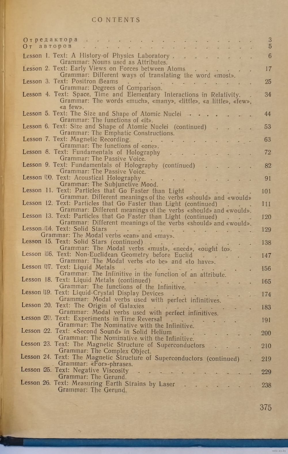 Предлагаемый учебник предназначен для студентов - физиков старших курсов и ставит перед преподавателем цель научить студентов речевым умениям и навыкам, необходимыми для чтения и понимания оригинальной литературы по специальности, а также для выражения своих мыслей в монологической и диалогической форме в пределах тематики по специальности.