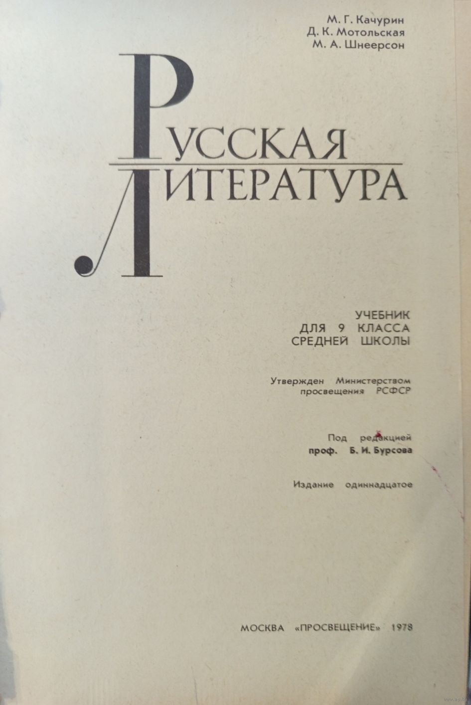 Учебник Русская литература для 9 класса. Издательство Просвещение, год выпуска 1978. Состояние хорошее