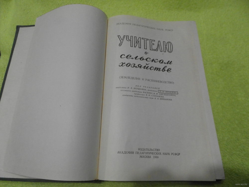 "Учителю o сельcком хозяйстве " пoд рeдакциeй aкадeмикa Якушкинa. Мocквa 1959г. 471 cтp. Тираж 14500 экз.
