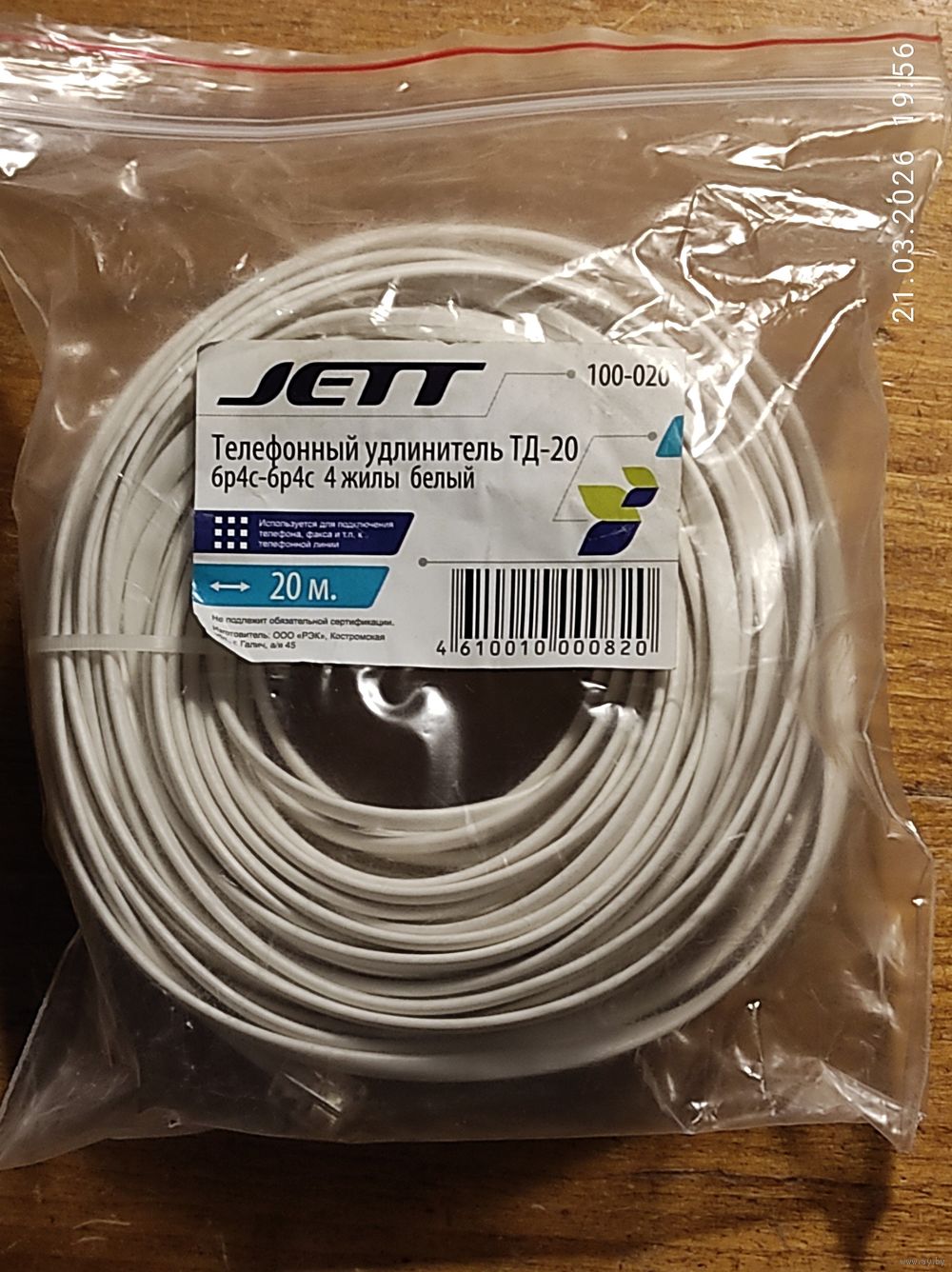 Удлинитель телефонный 20м джек-джек 6Р4С