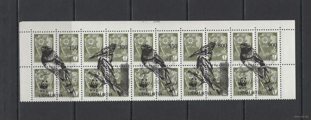 Удмуртия Надпечатка на марках стандарта СССР Птицы. Местные выпуски. Провизории. Сцепка из 20 марок