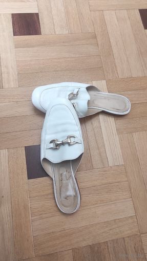 Удобные мюли на 39 размер. На полную ногу и средней полноты подойдут. Мягкая, качественная натуральная кожа. Полиуретановые набойки. Носила не очень долго. Молочного цвета.