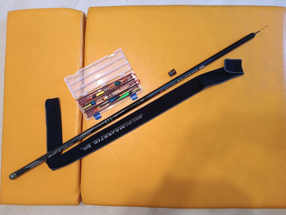 Удочка маховая (без колец) Black Hole Majestic 8 м, транспортная длина 1,38 м. Карбон IM9. Оснащена коннектором. Вес 305 г. Количество секций – 8. Совершенно новая. В комплекте набор монтажей на неё в коробке Flambeau (леска 0,16 – 0,2, поводки FC 0,14 – 0,18, поплавки 3 - 6 г, всё новое и качественное). 350 руб.