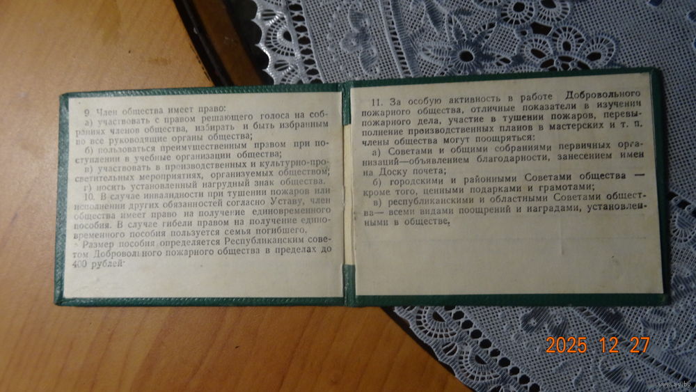 Удостоверение Добровольное пожарное общество 1962 г