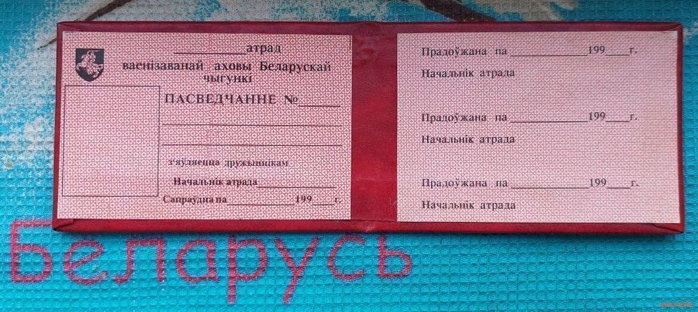 Удостоверение "Дружинник" - 90-е годы. Пагоня. Беларусь. Предложи свою цену или обмен!