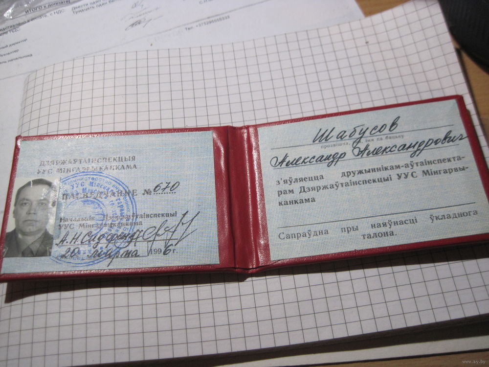 Удостоверение дружинника-автоинспектора ГАИ УВД Мингорисполкома 1996 г. с рубля!