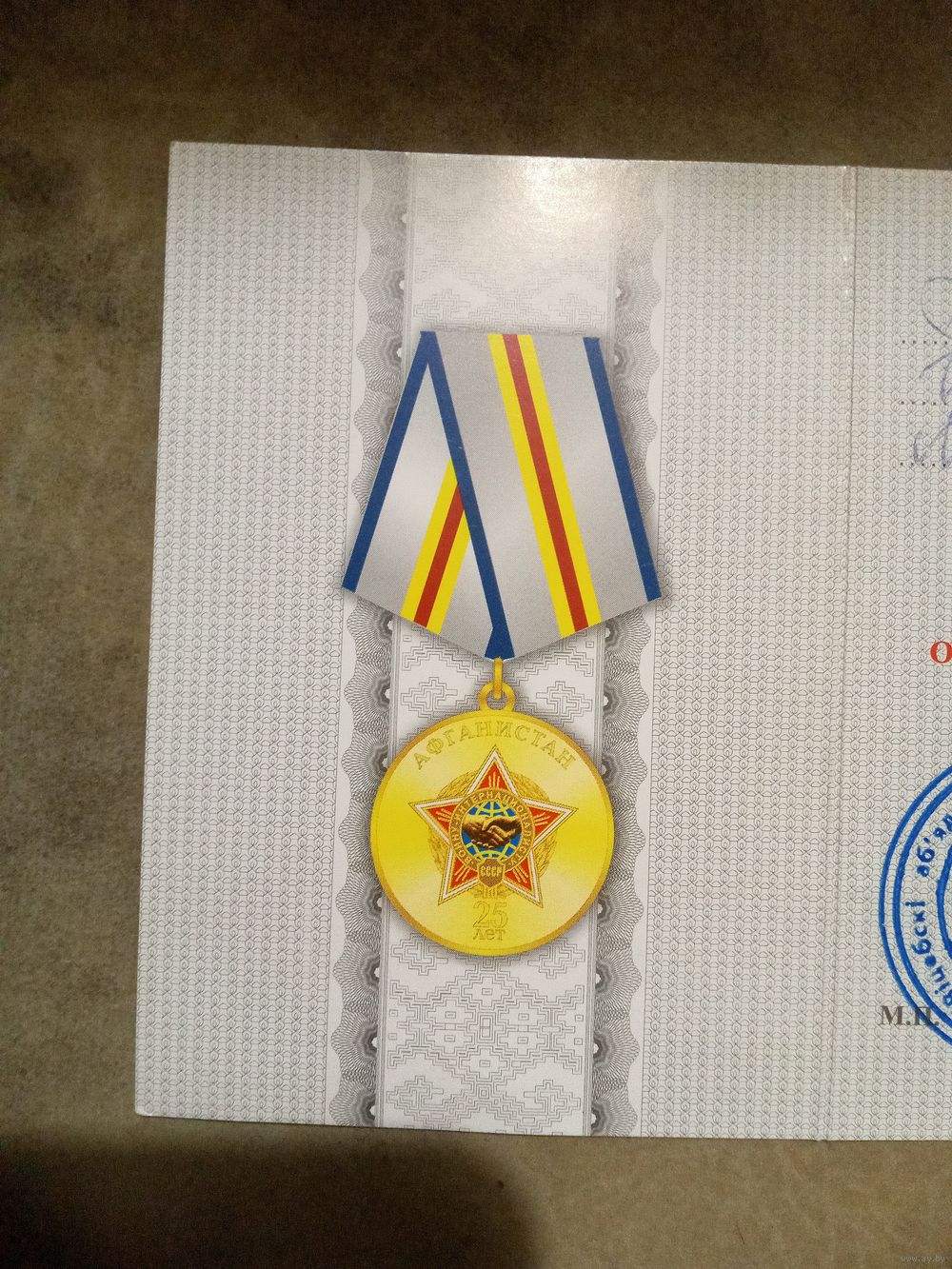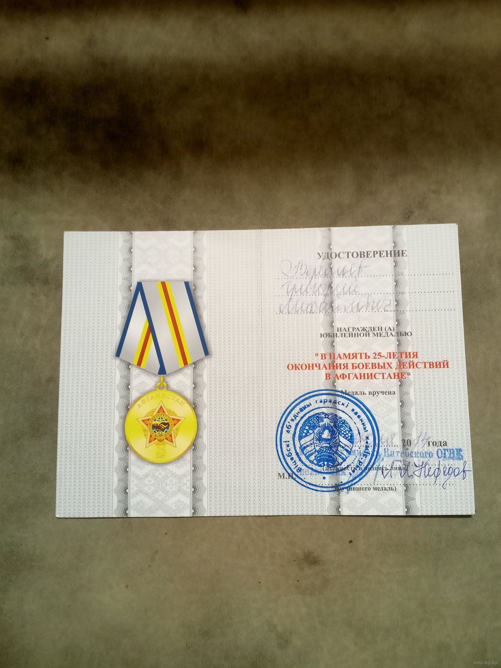 Удостоверение к медали. 25 лет окончания боевых действий в Афганистане.