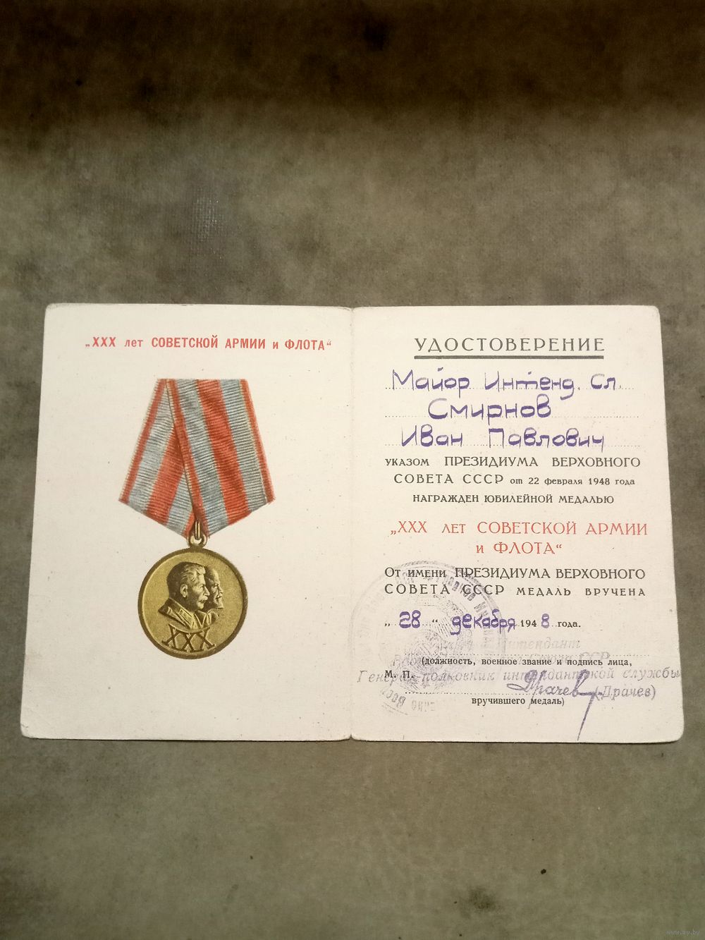 | Удостоверение на майора. Подпись Генерала-полковника Драчёва. | |