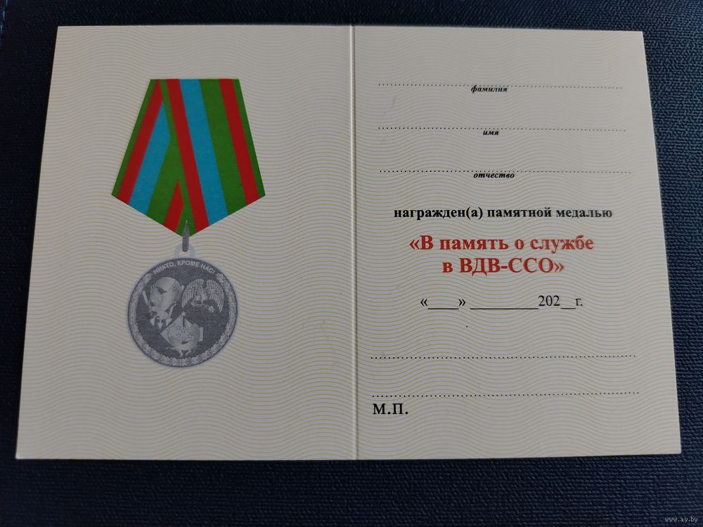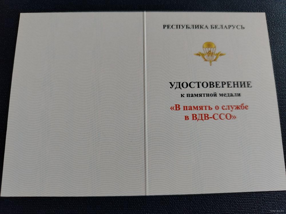 Удостоверение к медали "В память о службе в ВДВ-ССО" разновидность медали 3