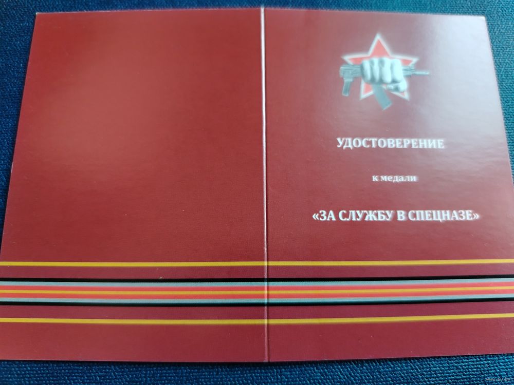 Удостоверение к медали "За службу в спецназе"