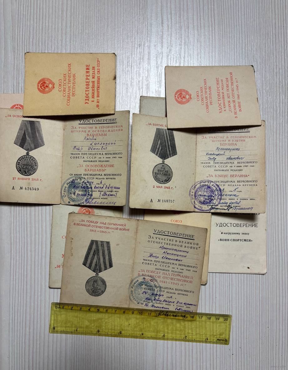Удостоверение к медалям на одного человека