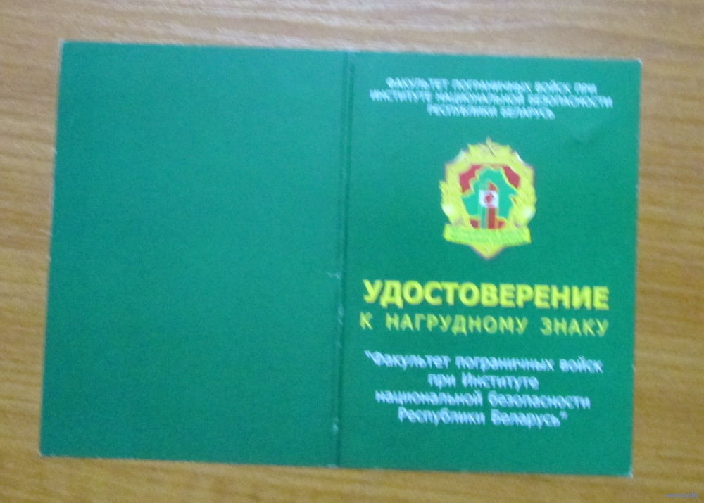 Удостоверение к знаку Факультет пограничных войск при институте национальной безопасности