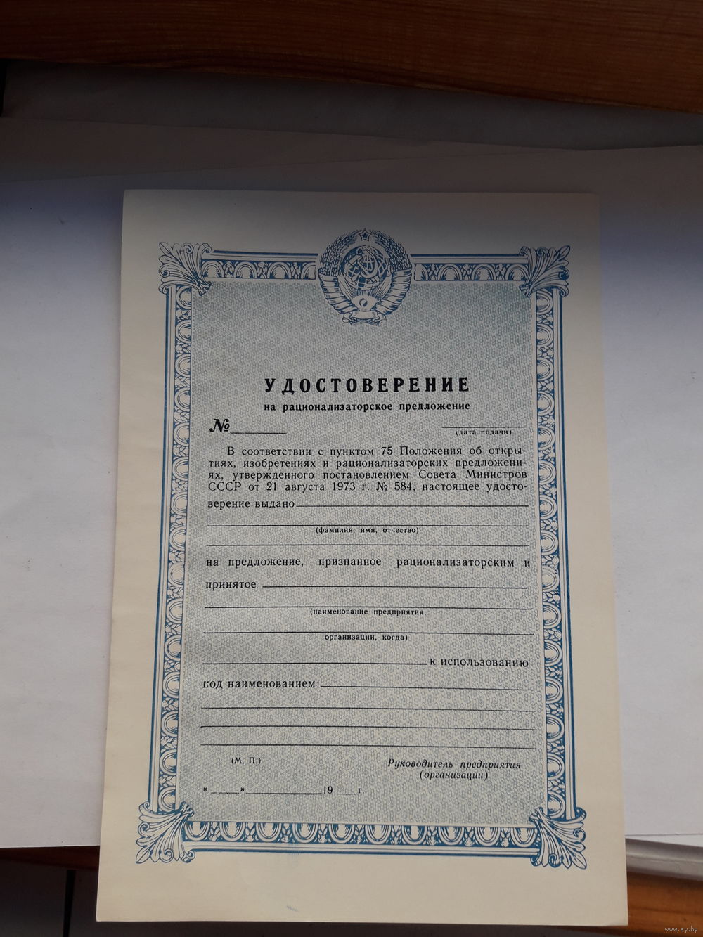 Удостоверение на рац. предложение