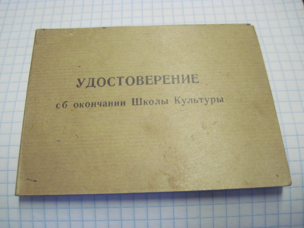 Удостоверение об окончании Школы Культуры 1959 г. известного государственного деятеля БССР и РБ. Торги!