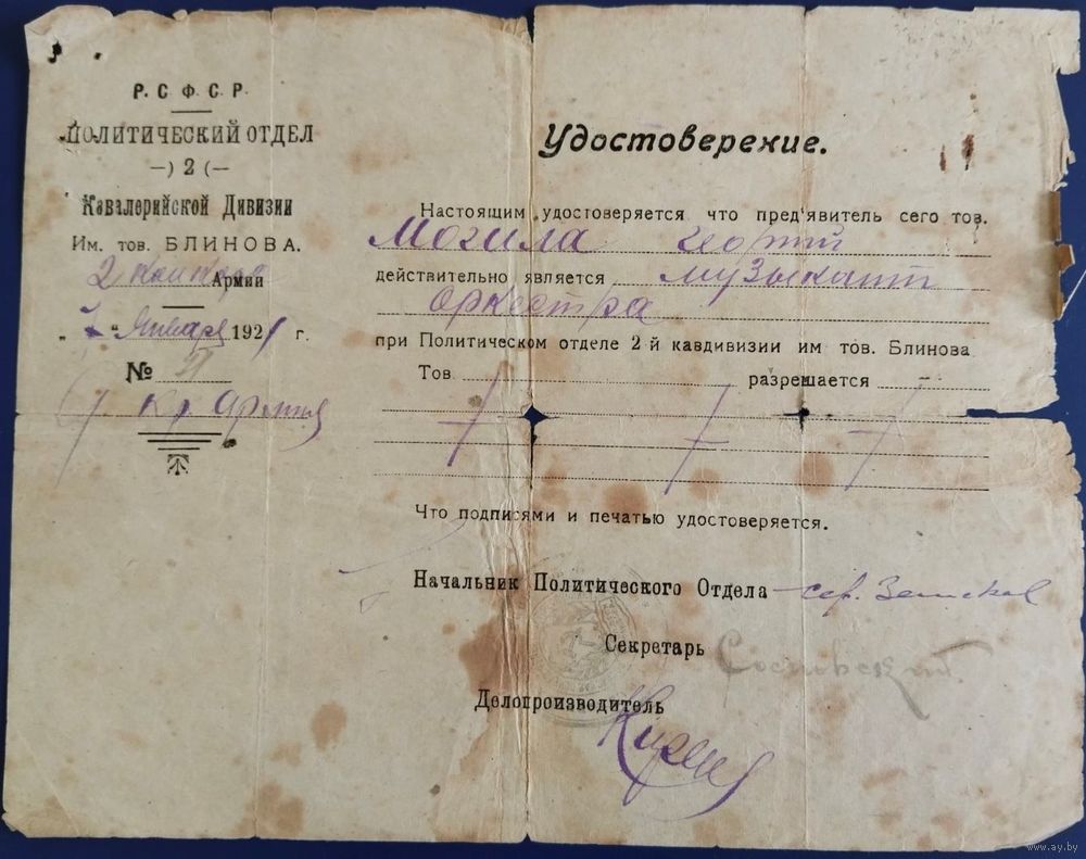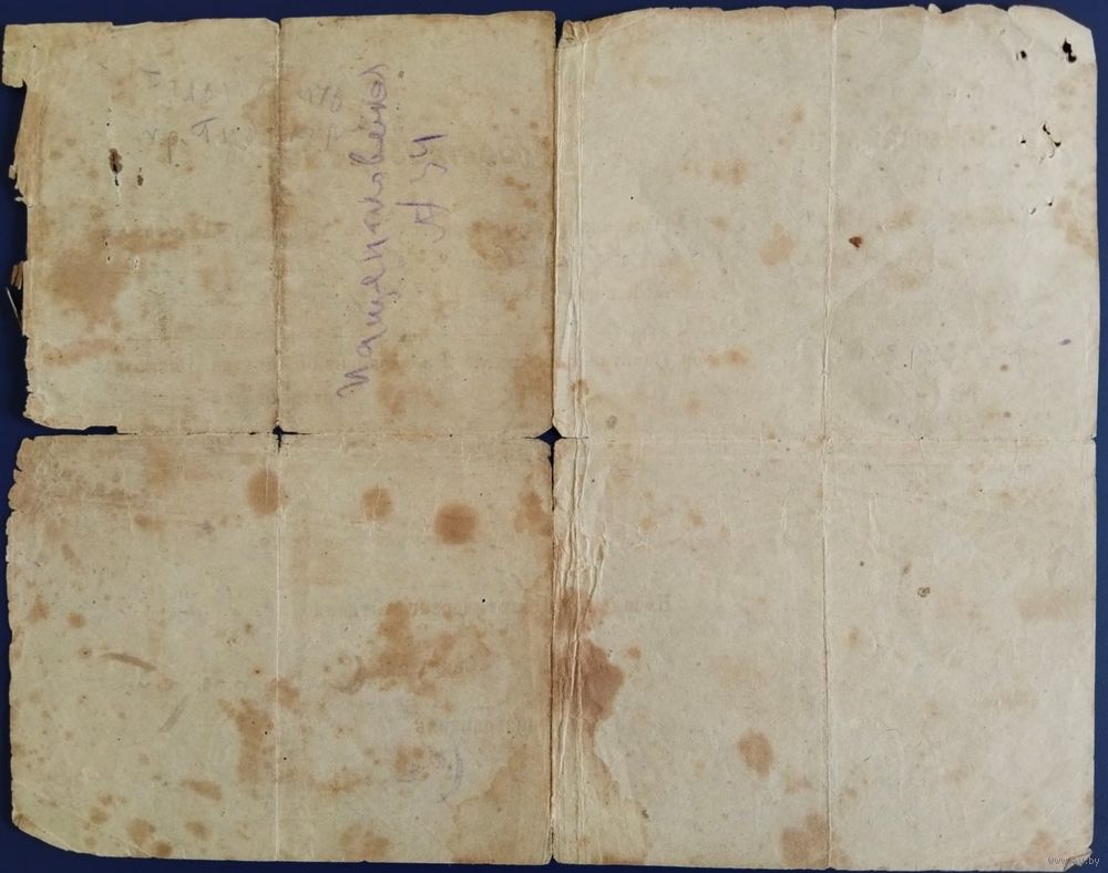 Оригинальный документ, размером 170 х 215 мм., в "хорошем с минусом" состоянии, но имеются надывы и пятна, см.фото.