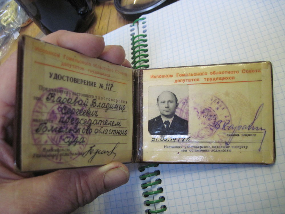 Удостоверение Председателя Гомельского областного суда 1979 г. известного государственного деятеля БССР и РБ. Торги!