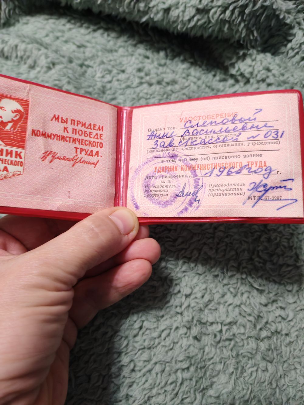 Удостоверение Ударник ком.труда 1968