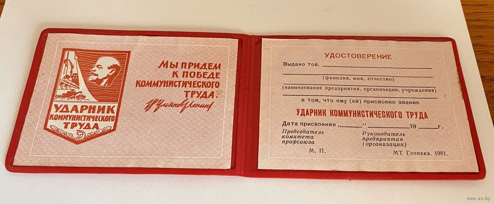 Удостоверение. "Ударник коммунистического труда". Чистое.