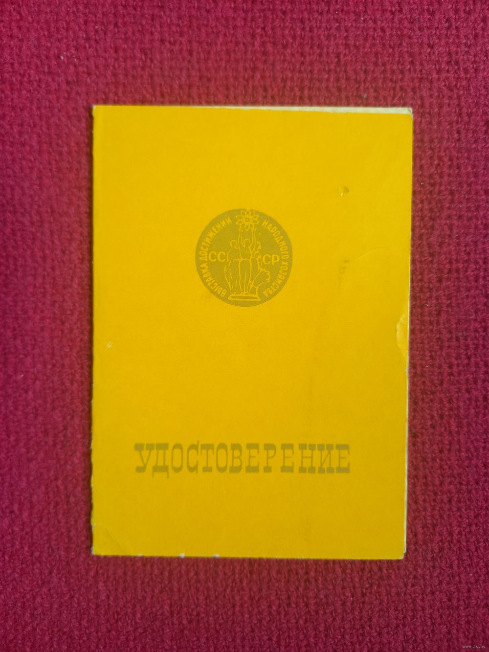 Удостоверение ВДНХ 1977 г. За достигнутые успехи в развитии народного хозяйства СССР. Серебряная медаль.