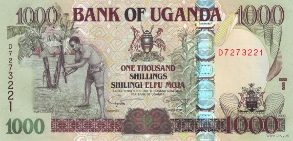 Уганда 1000 шиллингов образца 2009 года UNC p43d