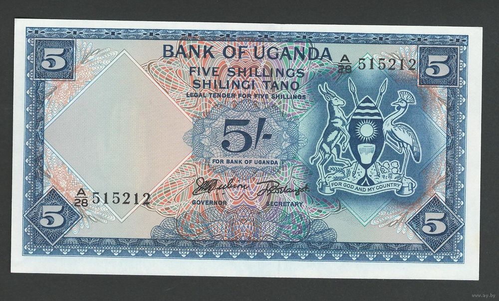 Уганда 5 шиллингов 1966 года. Тип P-1. Состояние UNC