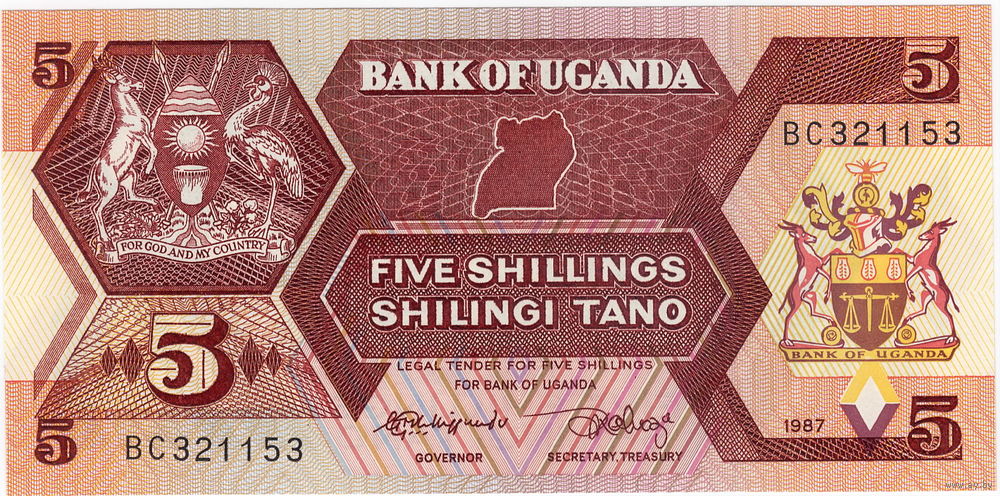 Уганда, 5 шиллингов, 1987 г., P-27, UNC