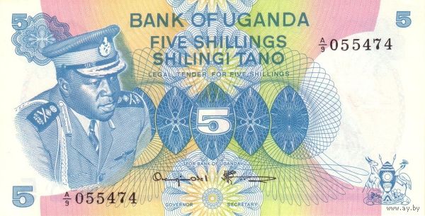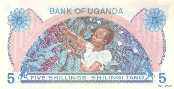 Уганда 5 шиллингов образца 1977 года UNC p5a