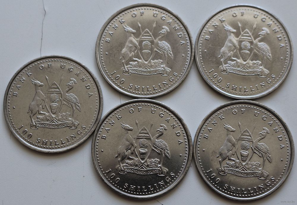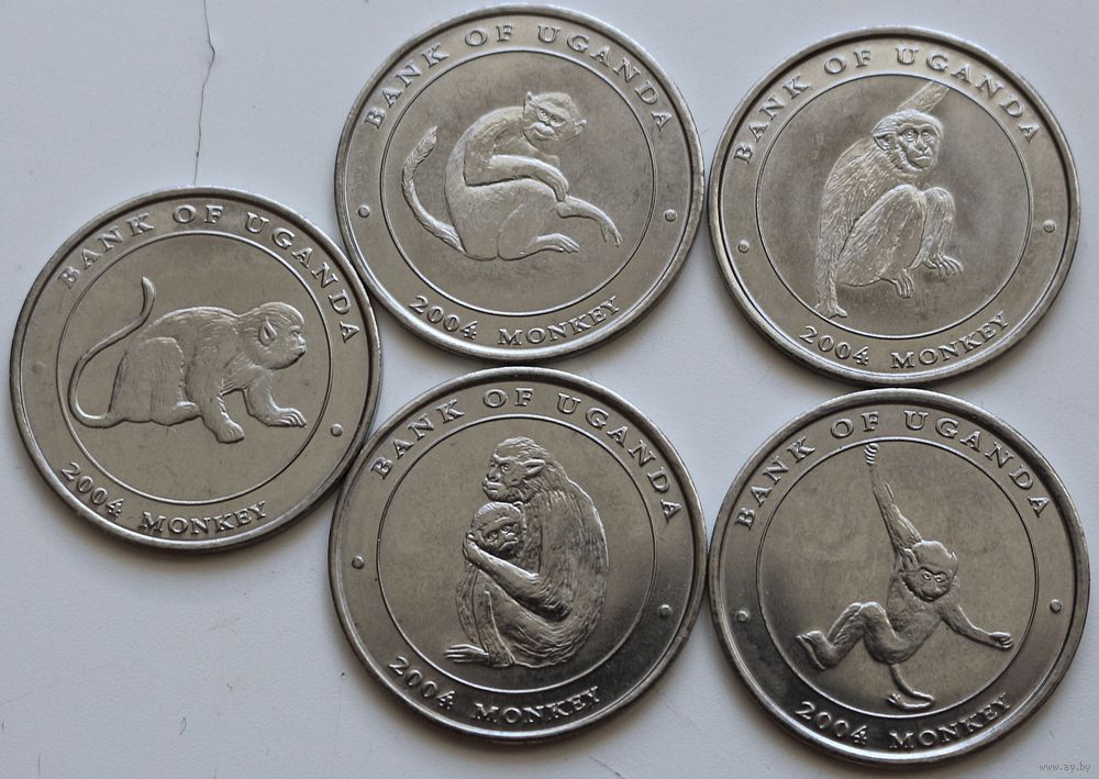 Уганда Набор 5 монет "Обезьяны" 100 шиллингов 2004 год