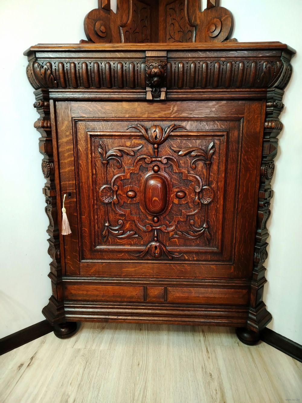 Прекрасный предмет мебели прошлых лет. Европа. Массив дерева (дуб) с красивой резьбой ручной. Высота до столешницы 110 см, вся высота 210 см, ширина 90см, по стене 65см.