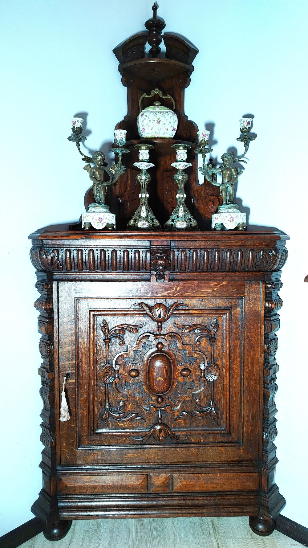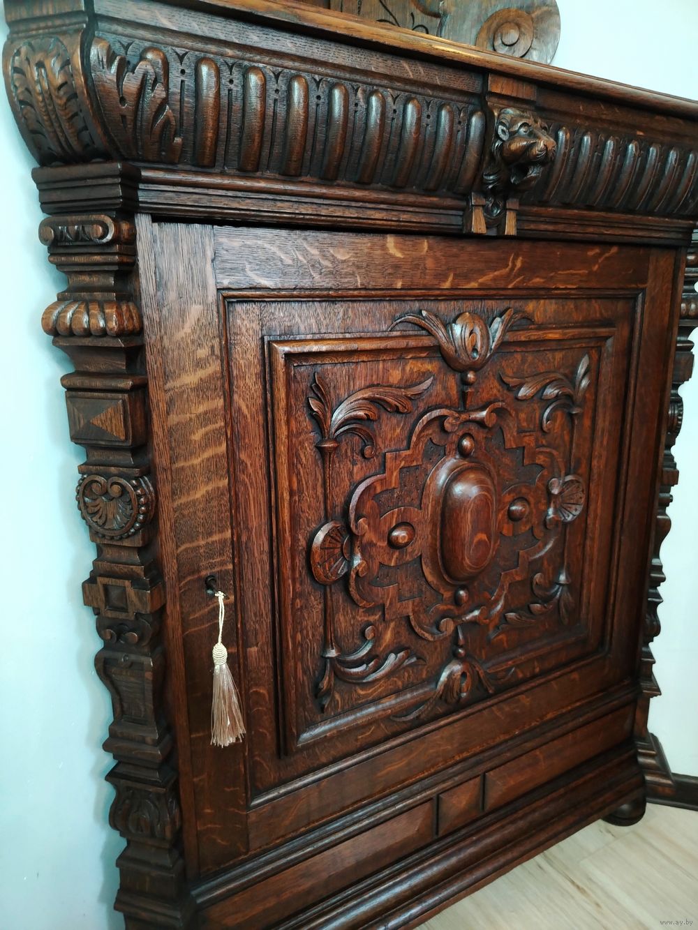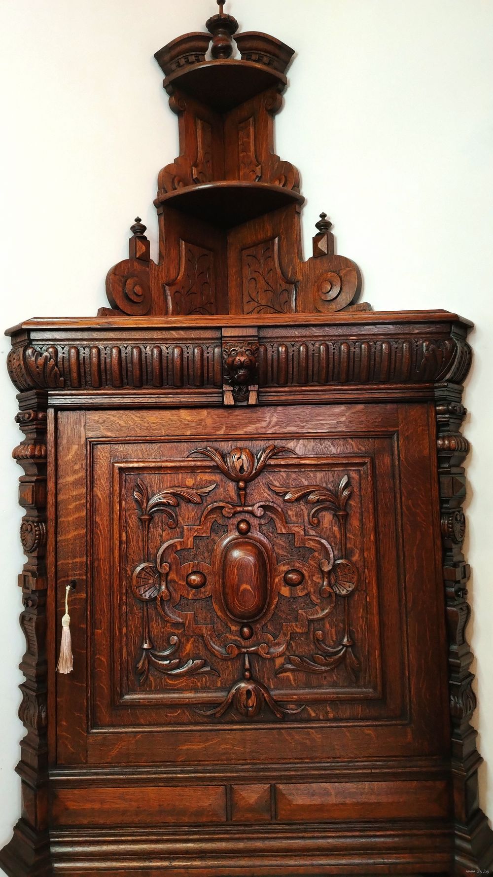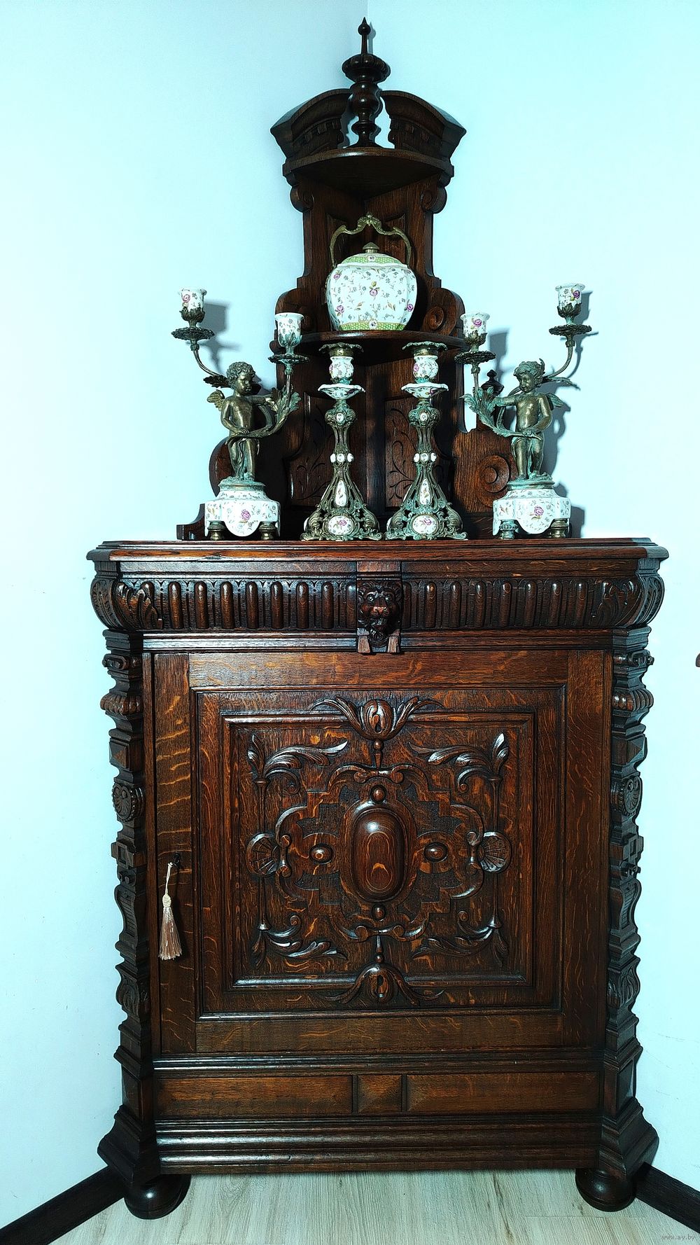 Прекрасный предмет мебели прошлых лет. Европа. Массив дерева (дуб) с красивой резьбой ручной. Высота до столешницы 110 см, вся высота 210 см, ширина 90см, по стене 65см.