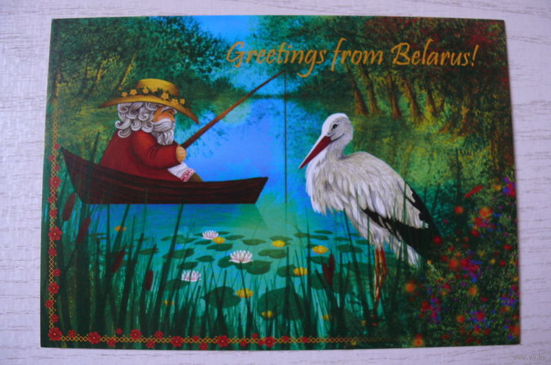 Угляница Алена, Привет из Беларуси! (на белорусском языке) Домовик на рыбалке; 2013, чистая (аист).