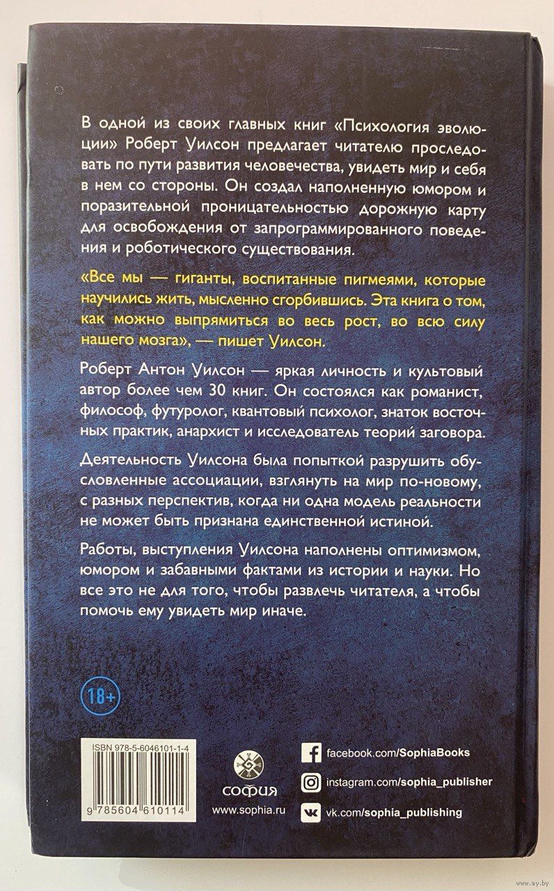 В одной из своих главных книг «Психология эволюции» Роберт Уилсон предлагает читателю проследовать по пути развития человечества, увидеть мир и себя в нем со стороны. Он создал наполненную юмором и поразительной проницательностью дорожную карту для освобождения от запрограммированного поведения и роботического существования. «Все мы — гиганты, воспитанные пигмеями, которые научились жить, мысленно сгорбившись. Эта книга о том, как можно выпрямиться во весь рост, во всю силу нашего мозга», — пишет Уилсон.