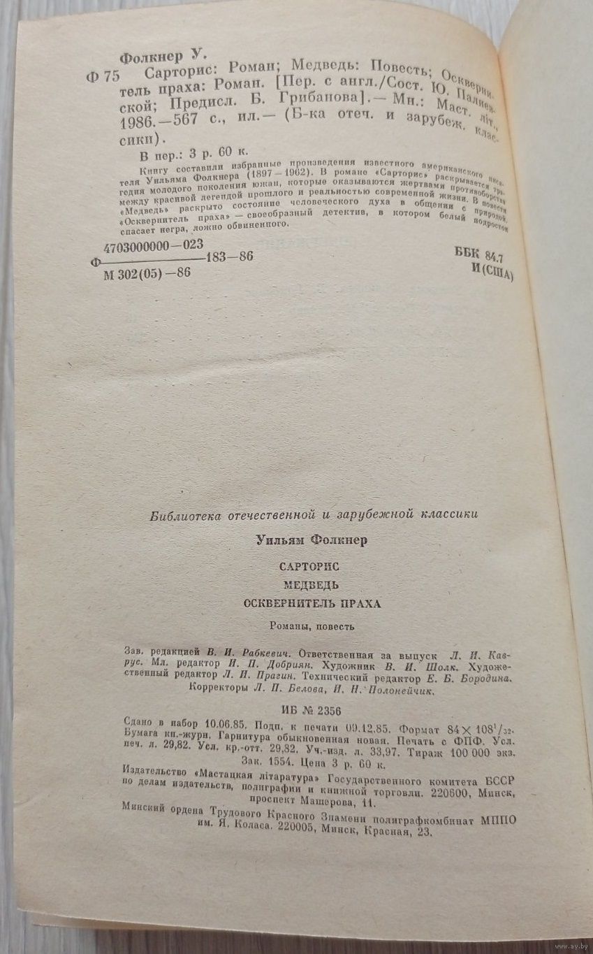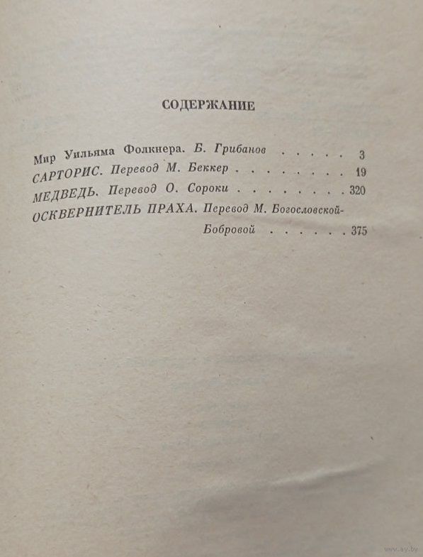 Уильям Фолкнер "Сарторис. Медведь. Осквернитель праха", 567 стр. Передача в Витебске возле ратуши. Пересылка в другой город за счёт покупателя по тарифам Белпочты либо Европочты после 100% предоплаты.