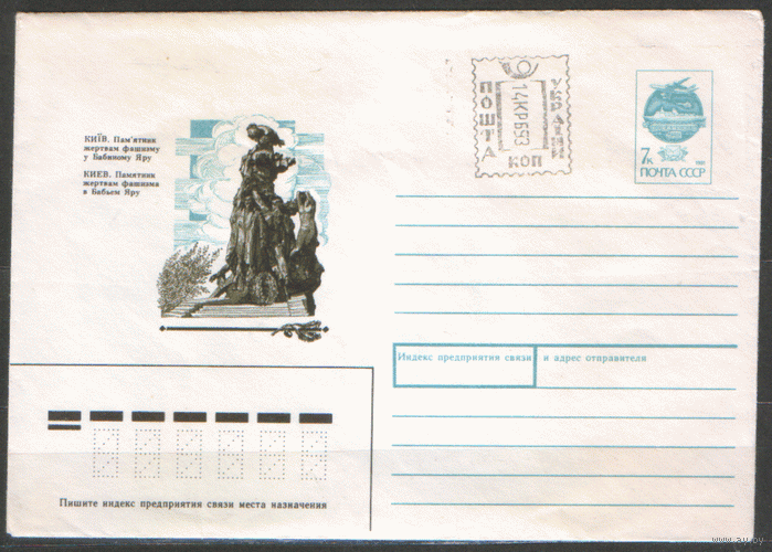 УКР. ХМ конверт. 1991. Киев. Памятник жертвам фашизма в Бабьем яре.