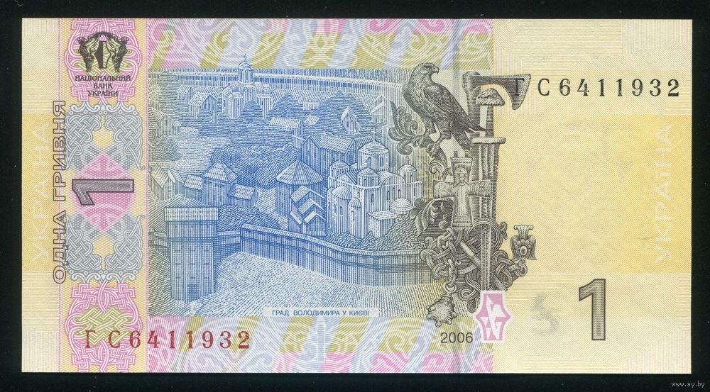 Украина 1 гривна 2006 г. P116Aa. Серия ГС. UNC
