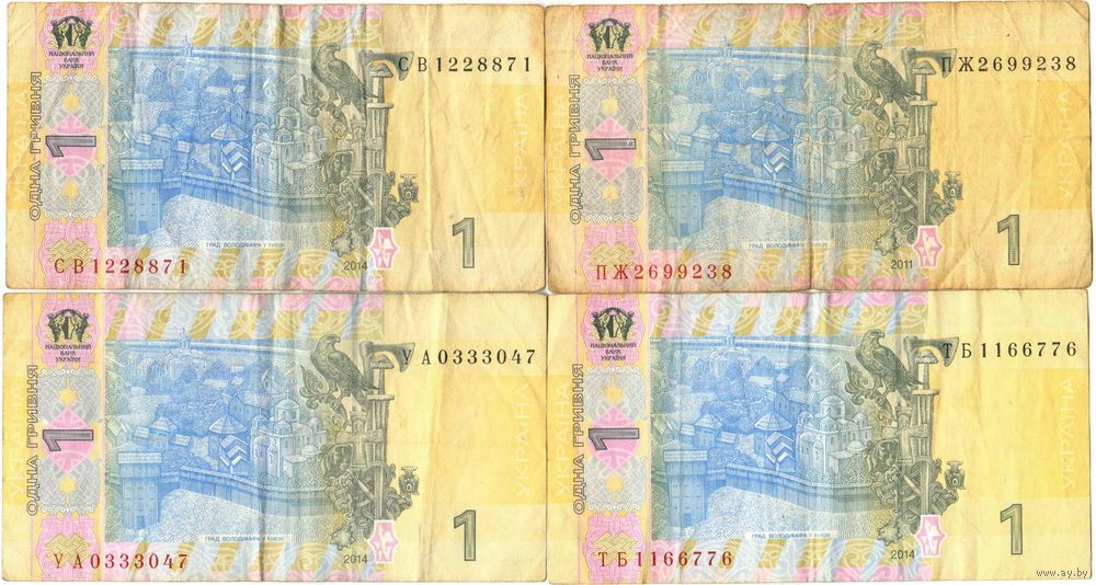 Украина 1 гривна серии ПЖ, СВ, ТБ, YА - на выбор