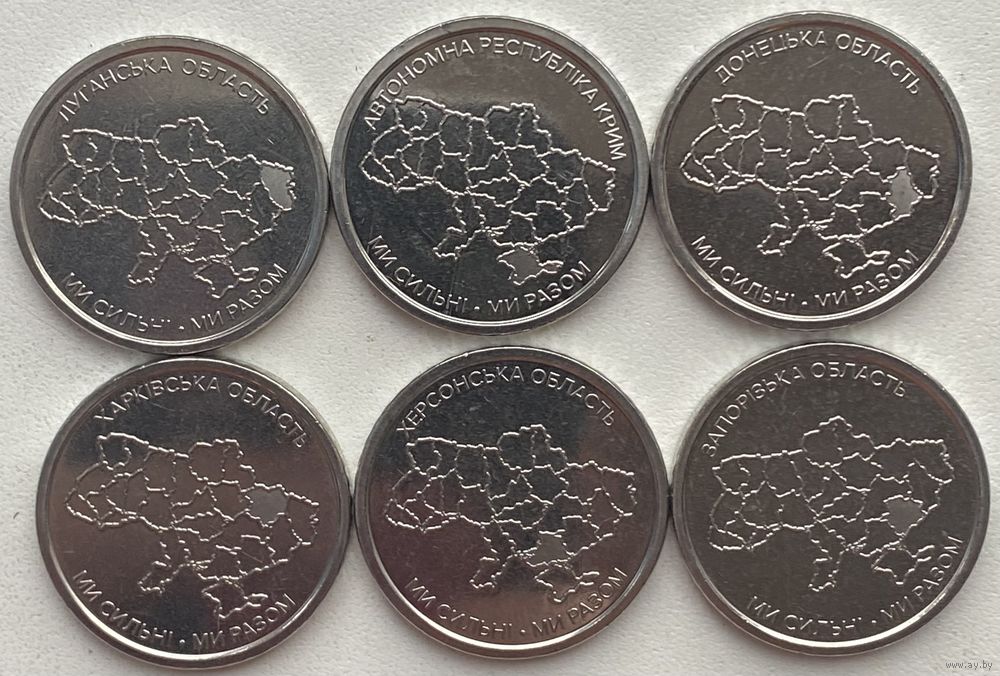 Украина 10 гривен 2025 - 2026 г. Автономная Республика Крым, Донецкая, Луганская, Харьковская, Херсонская, Запорожская области. Набор 6 шт.