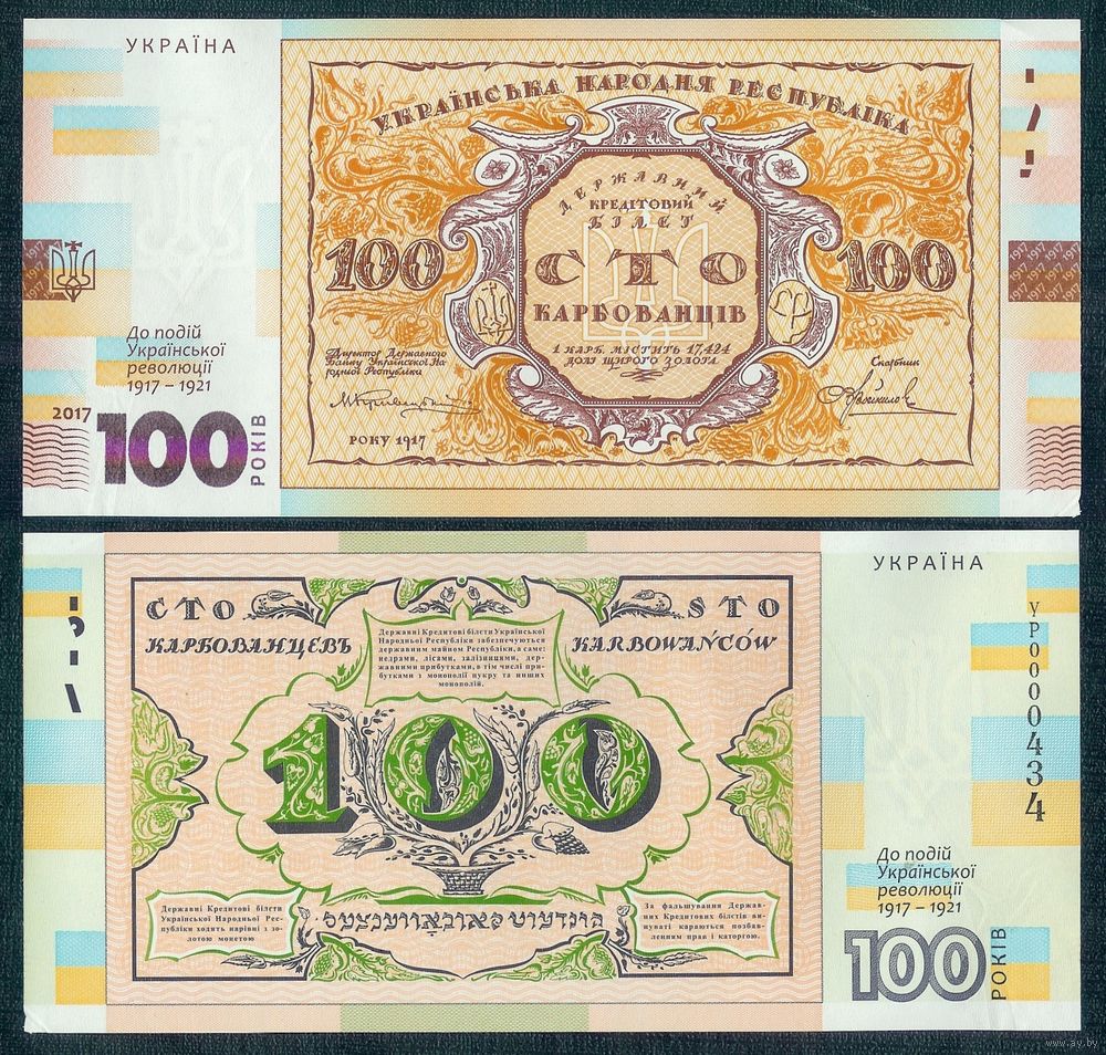 Украина 100 карбованцев 2017 год, UNC. "100 лет Украинской революции"