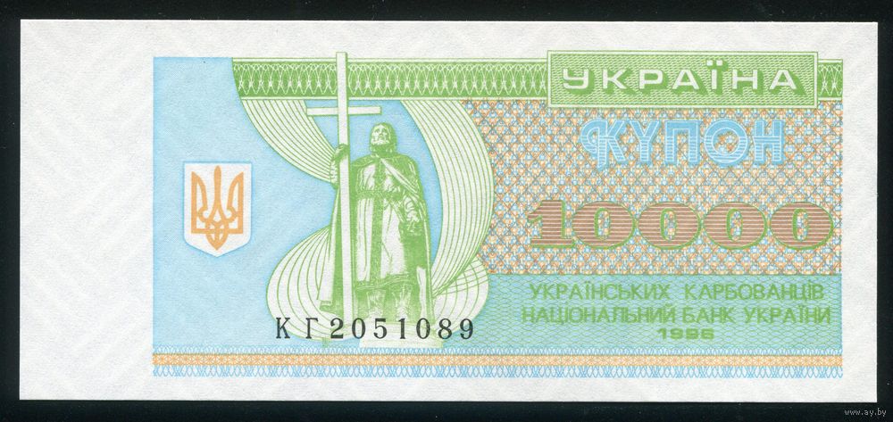 Украина 10000 карбованцев 1996 г. P94c. Серия КГ. UNC