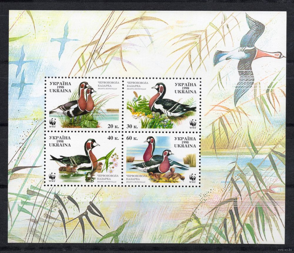 Украина 1998. WWF Птицы утки 4 марки половина листа (129)
