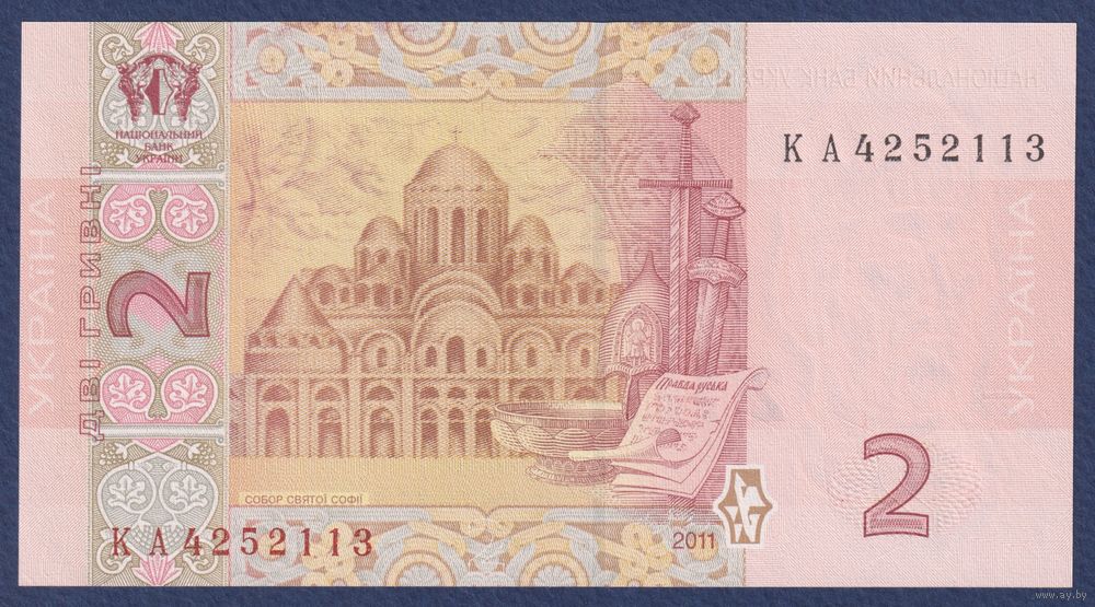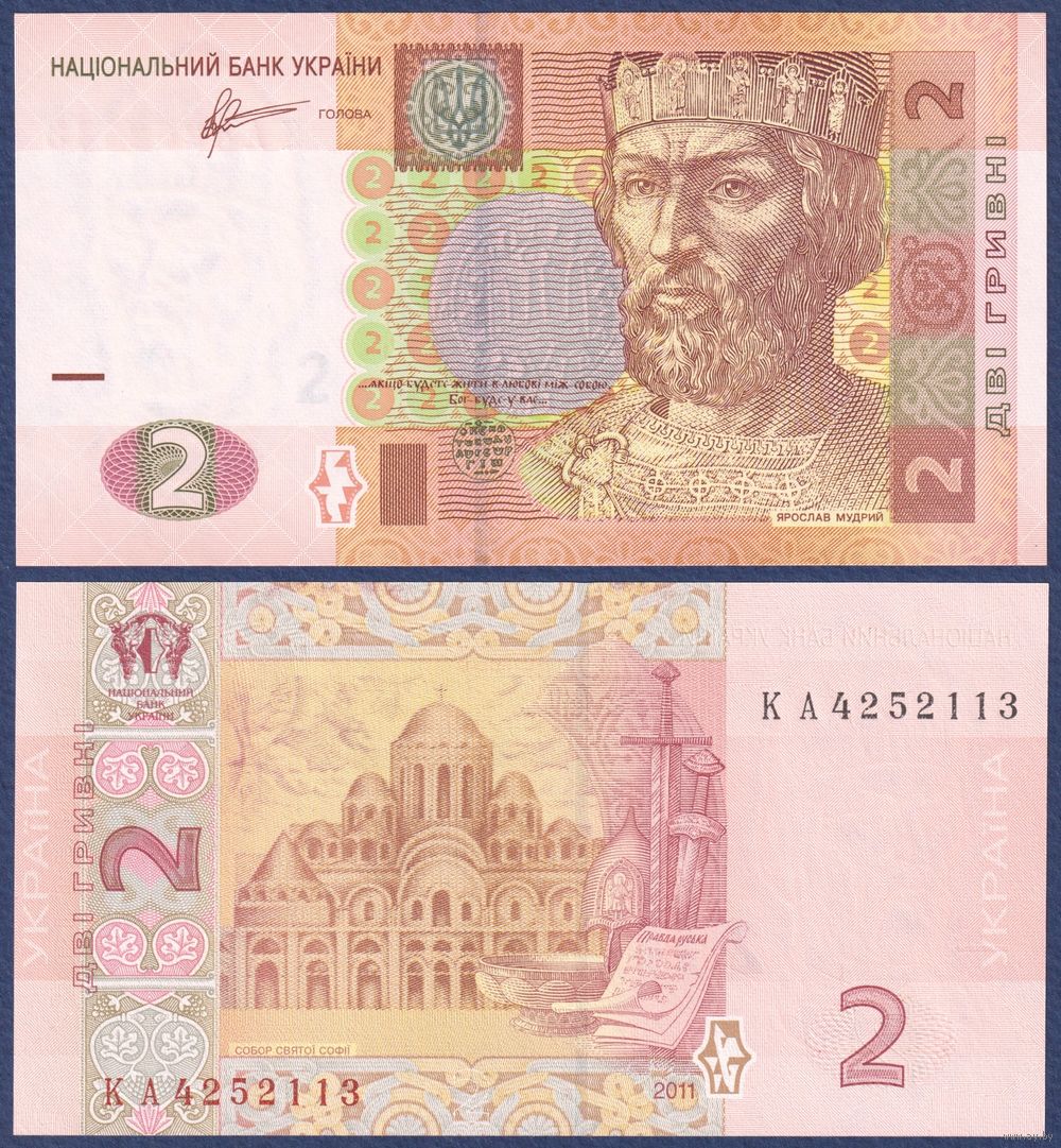 Украина, 2 гривны 2011 г, P-117c (КА, князь Ярослав, Софийский собор в Киеве), UNC