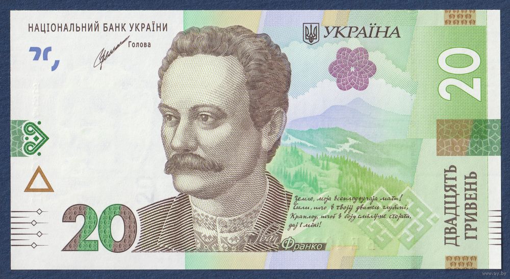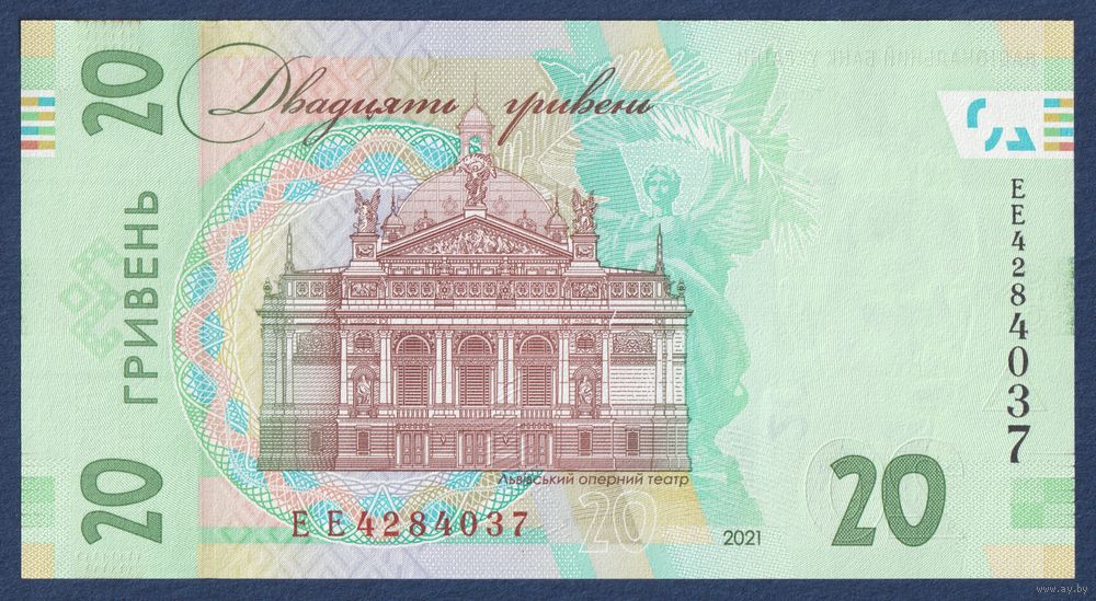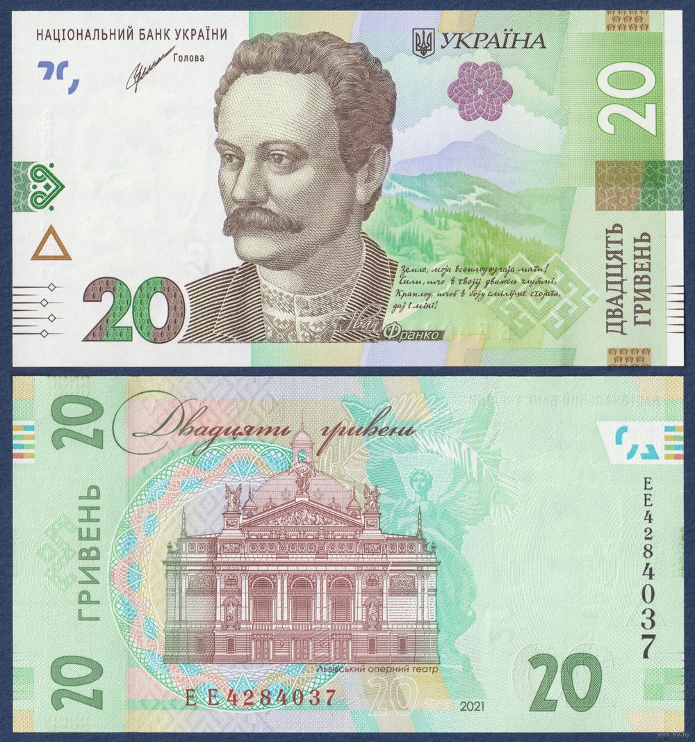 Украина, 20 гривен 2021 г, P-A126 (EE, писатель Иван Франко, театр оперы и балета во Львове), UNC
