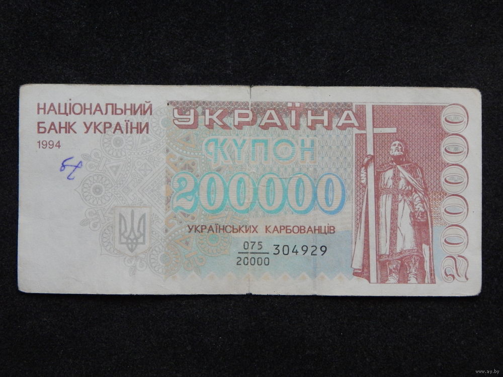 Украина 200 000 карбованцев 1994г.(дробный номер).