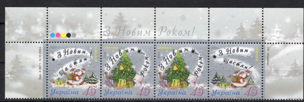 Украина 2004. С Новым годом! Верхняя сцепка 4 марки (350)