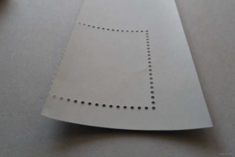 На блоке след от полоски альбома. Легкий прогиб на марке.