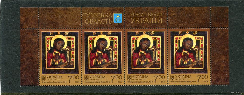 Украина 2018. Икона Божьей Матери. Верхняя сцепка листа