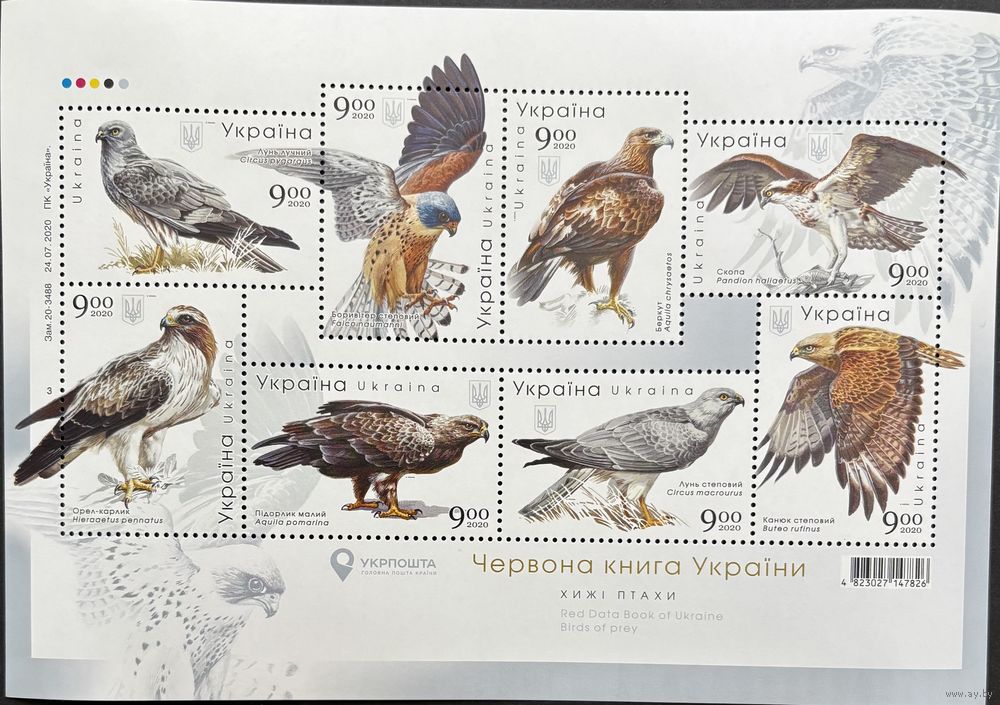 Украина 2020 Красная книга. Фауна. Хищные птицы. Блок